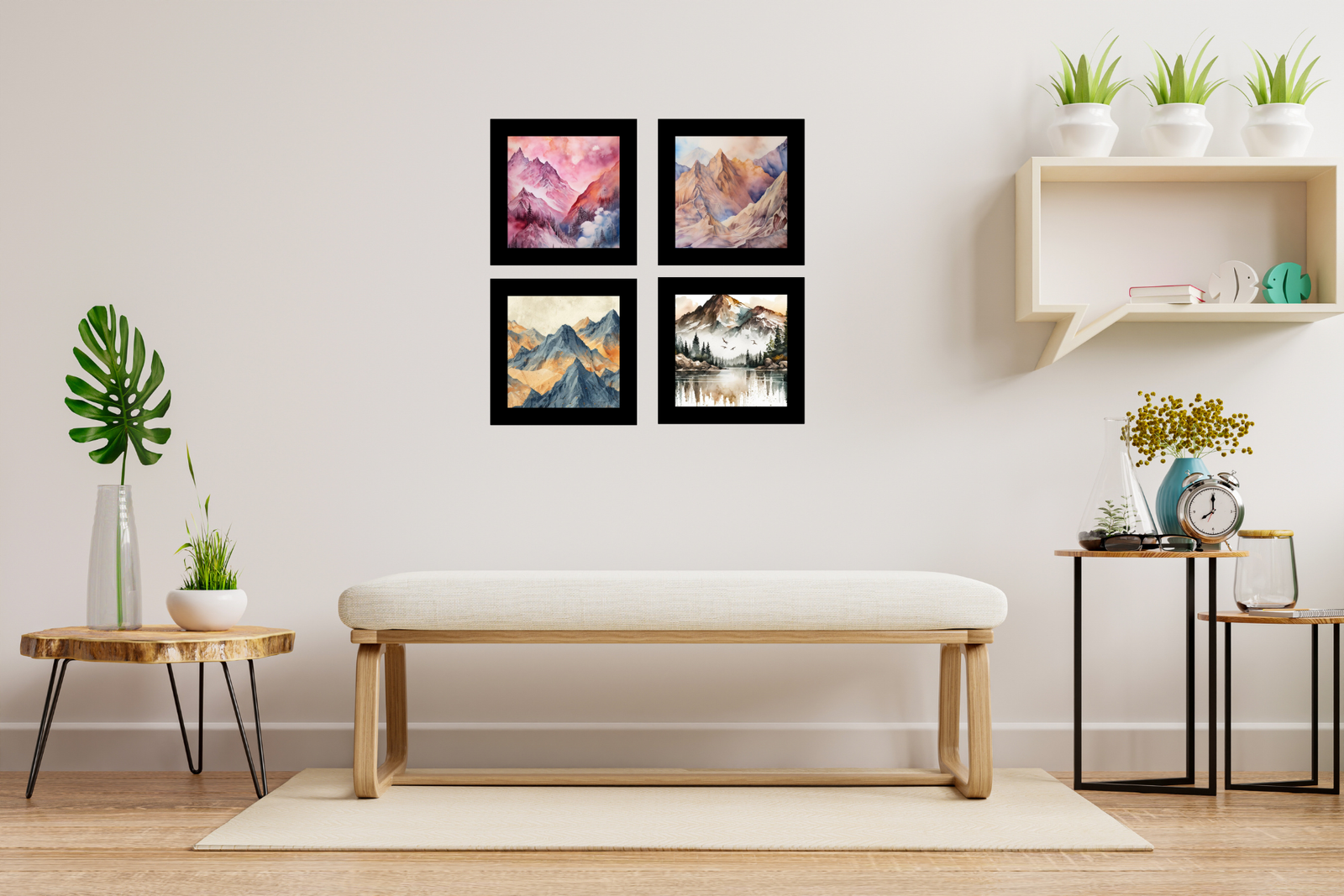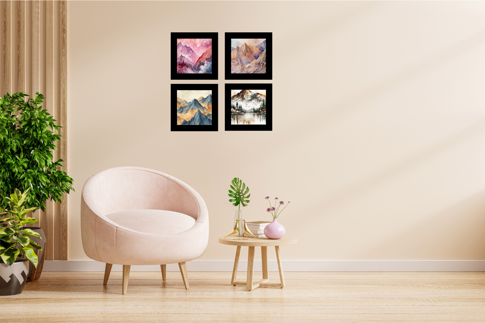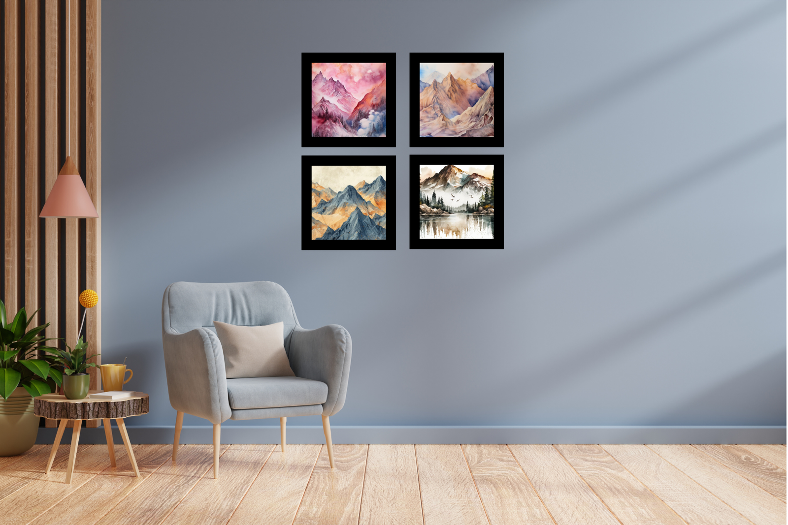 Transform your home into a serene haven with the Abstract Mountains View Wall Frame Set of Four. These frames not only serve as stunning decorative pieces but also as a celebration of nature’s majestic beauty. Order now to elevate your space with their enchanting and calming presence.